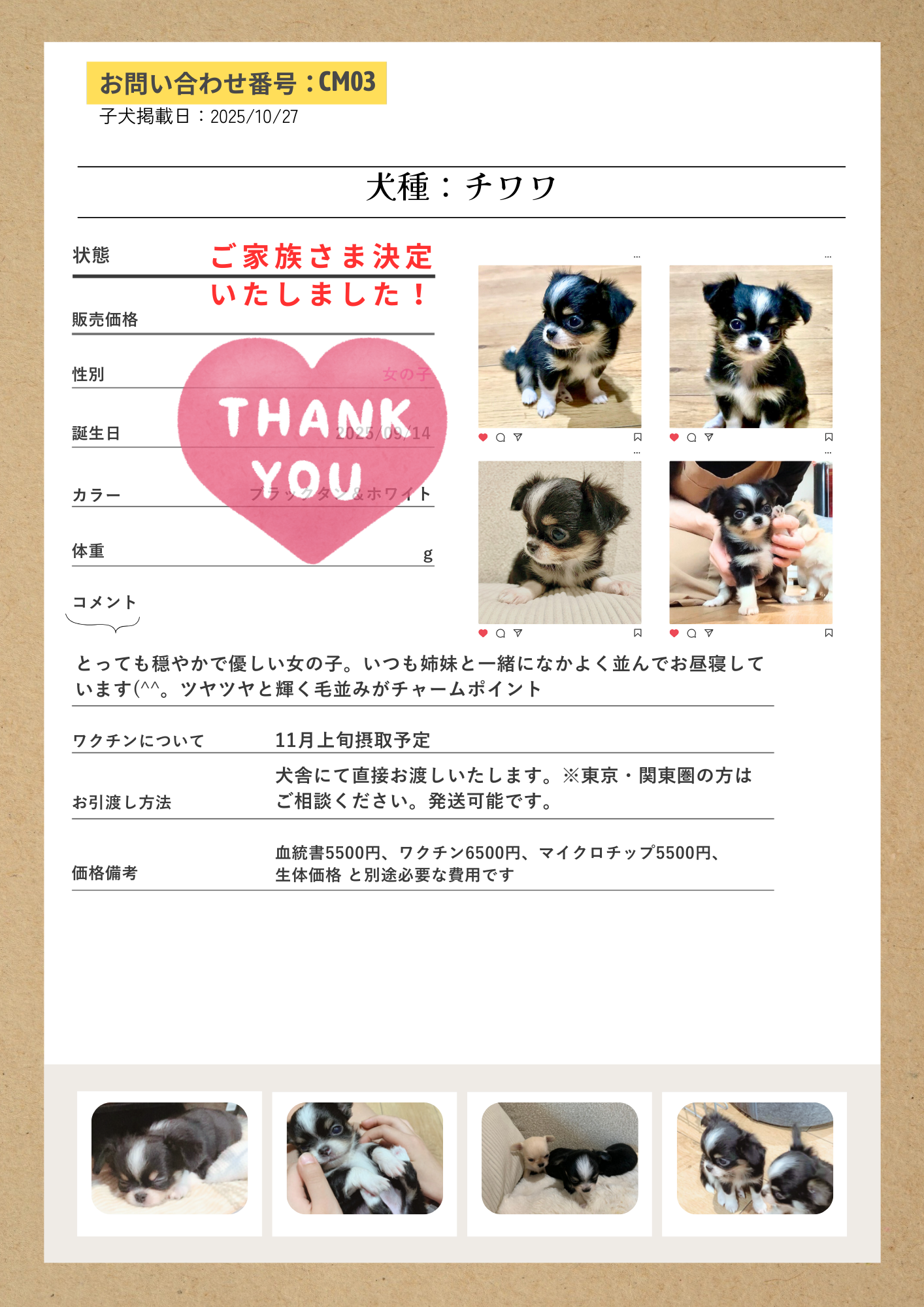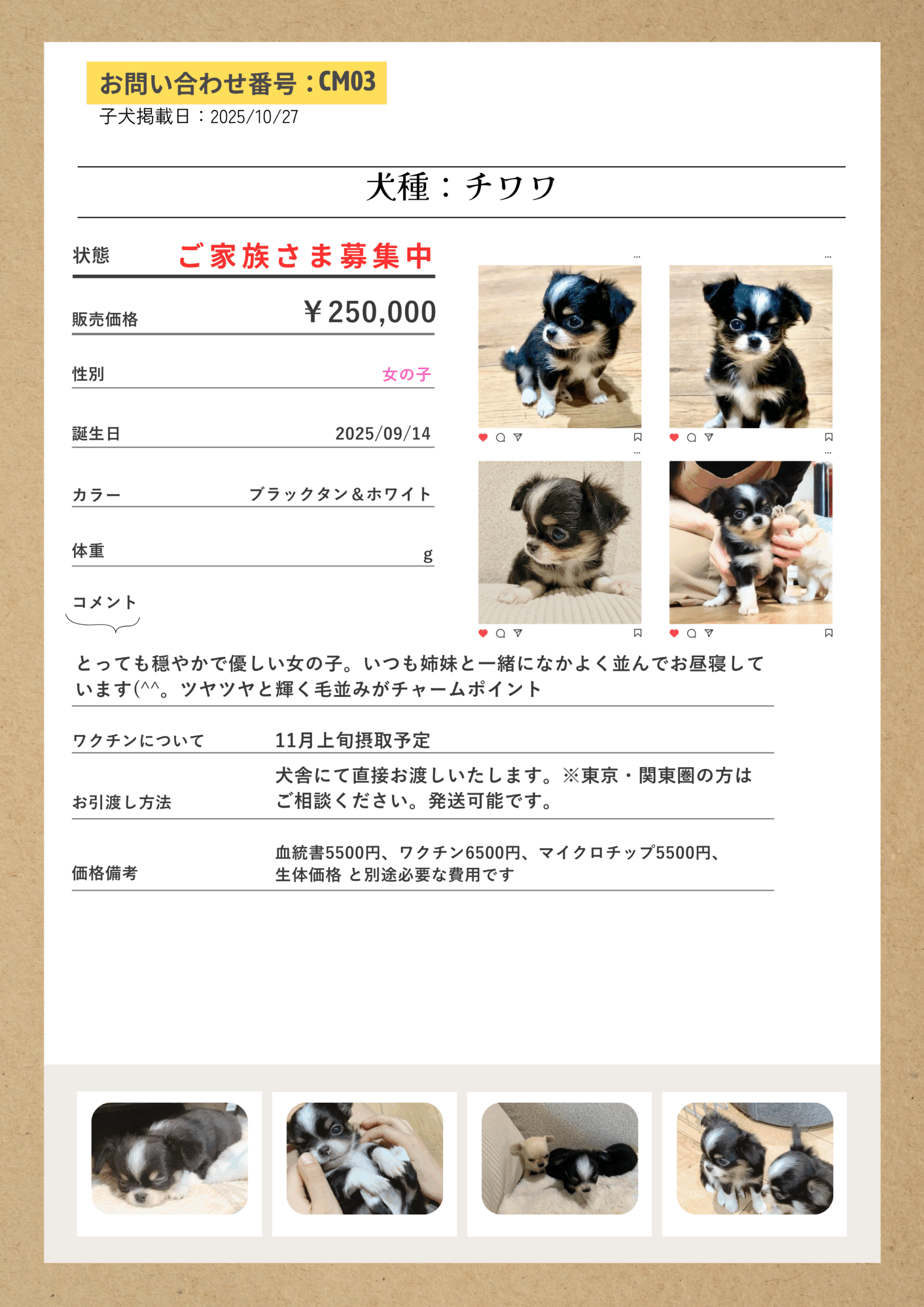 【お問い合わせ番号:CM03】 チワワ・女の子