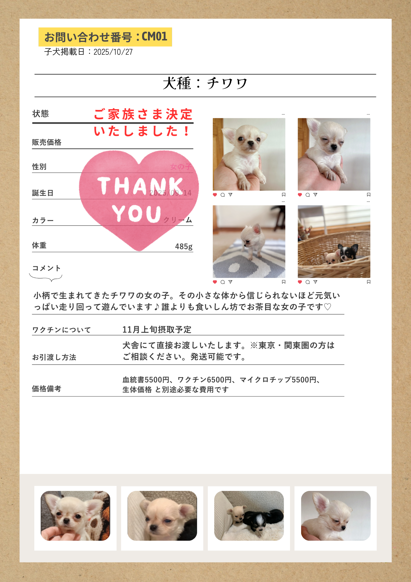 【お問い合わせ番号:CM01】 チワワ・女の子